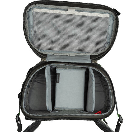 At first blush you would think it's just a standard bisected backpack, but you'd be wrong. The bottom camera pack portion rotates independently from the top for instant access to its 6L interior that holds a standard DSLR or mirrorless camera body, without a grip, plus three lenses or an attached 24-700mm 2.8 lens. The upper 16L holds personal items like food and clothing. An array of interior and exterior pockets provide ample room for organizing everything from your keys to a water bottle, a tripod, or trekking poles. A ten-point harness system allows you to adjust how and where you distribute the load for optimum comfort. Further design details include wear- and water-resistant nylon materials, polyurethane coatings, and durable YKK zippers.